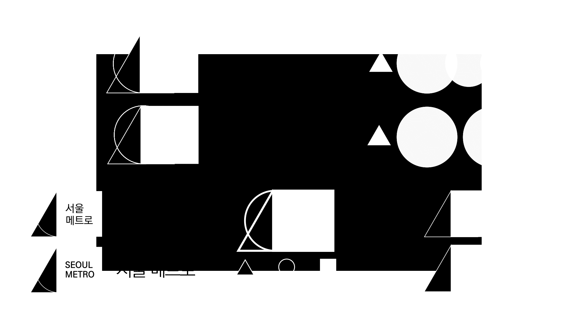 Visual Identity design for Seoul Metro Station, the motif of this identity was taken from the Seoul station’s roof. The triangular roof turned into a circular dome, transforming the structure into a square building. The circular dome has undergone several repairs, resulting in multiple layers overlapping, more than the squares and triangles.